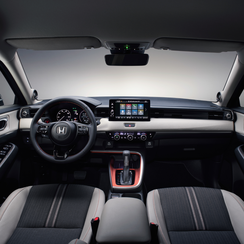 Ljus och luft stod i centrum när Hondas utvecklingsingenjörer skapat en ny design för interiören i nästa generations coupé-SUV HR-V Hybrid. Den funktion som troligen ger störst effekt på miljön i bilens kupé är också den mest subtila. Det helt nya luftspridningssystemet har L-formade ventiler och har placerats i de övre hörnen av instrumentpanelen. På så sätt levererar luftkonditioneringen en känsla av naturlig bris till bilens passagerare.